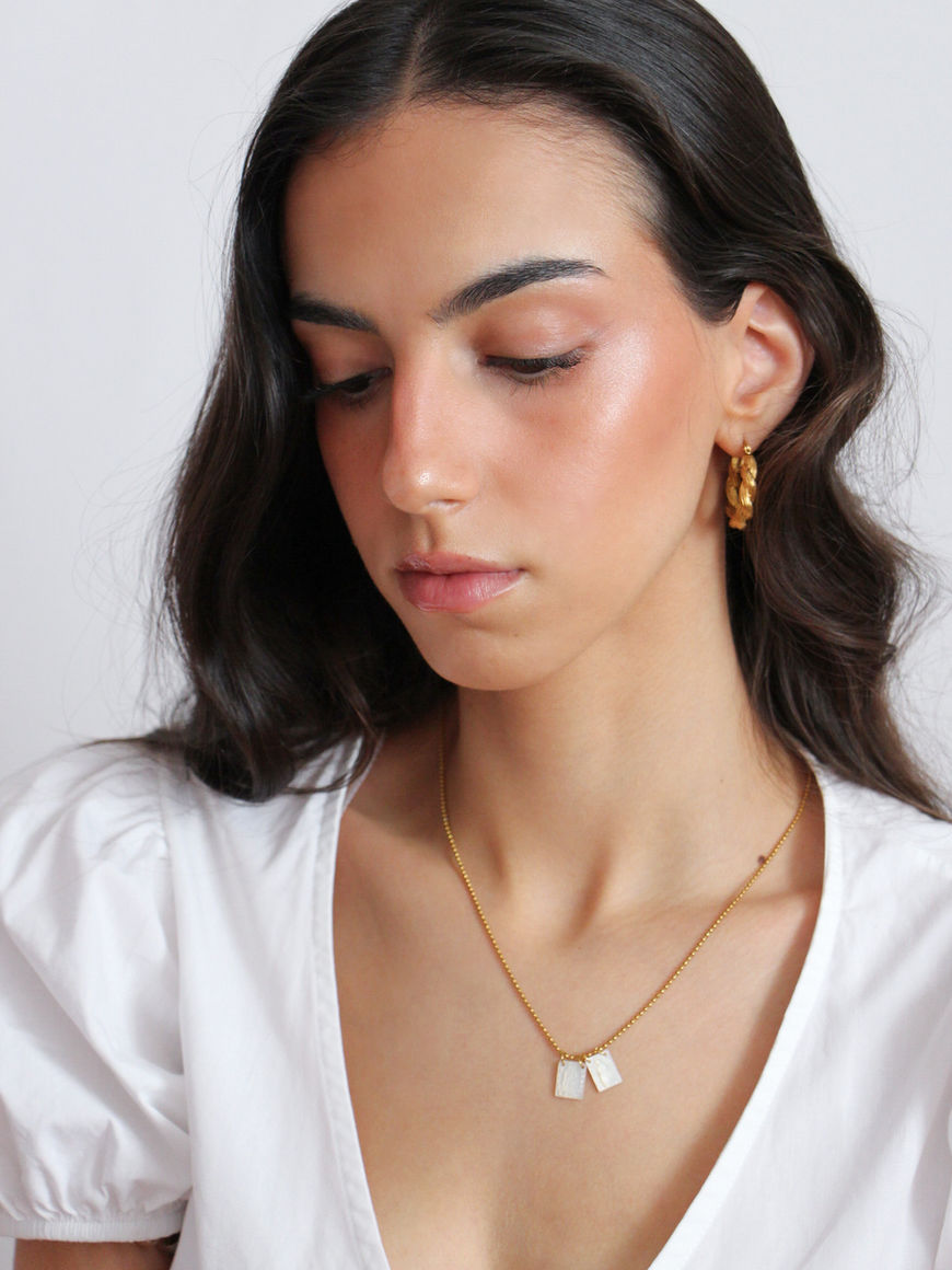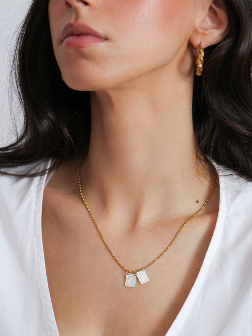 Golden scapular necklace.