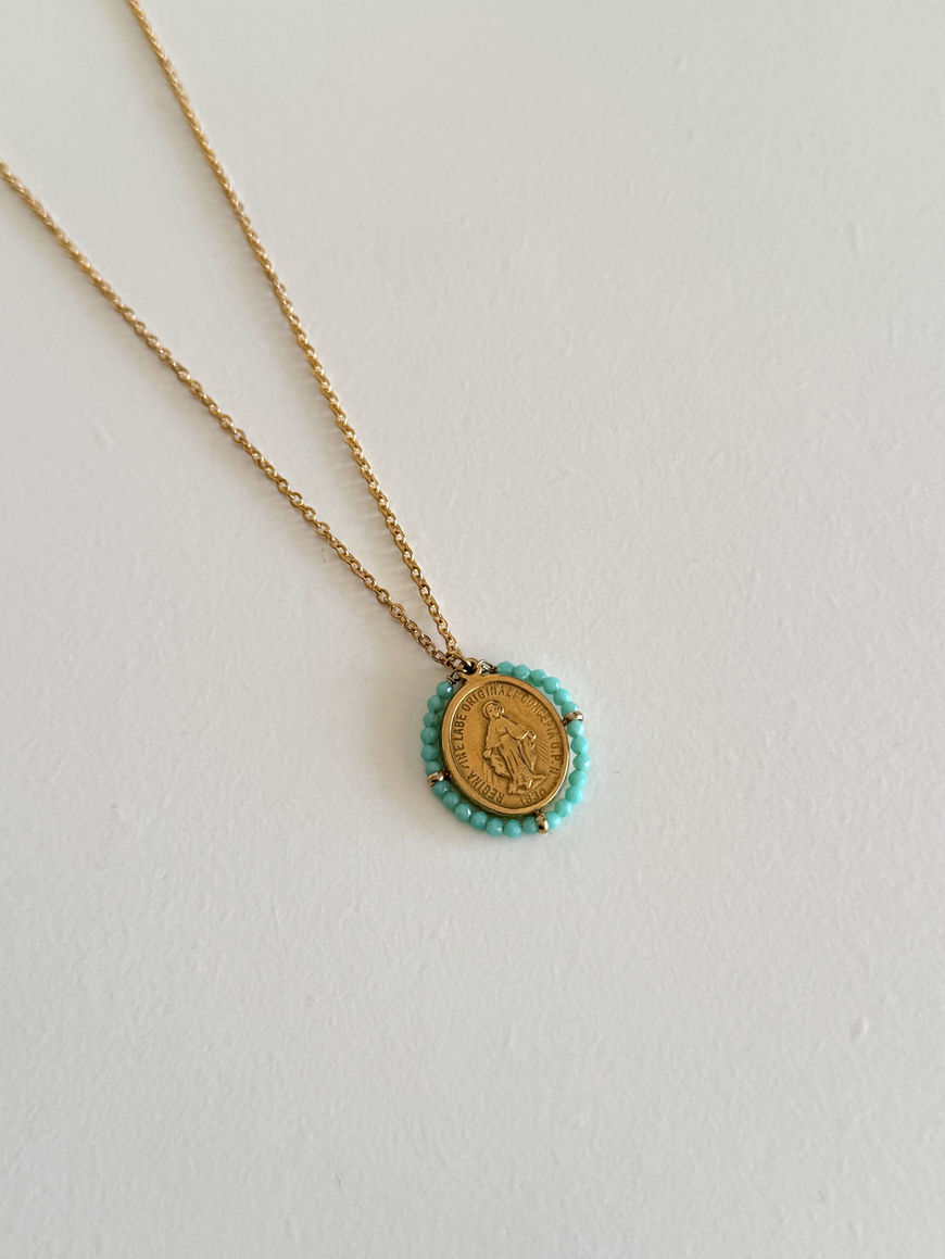 Golden crystal pendant necklace, perfeito para adicionar um toque de cor ao seu look.